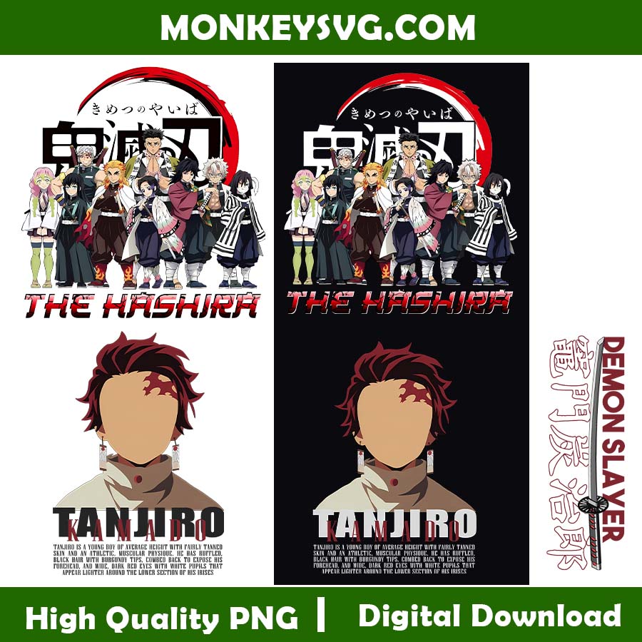Demon Slayer Hashira Design Bundle SVG PNG, Kimetsu No Yaiba Merch Png, Tanjiro Kamado Sun and Water Breathing Shirt Png, File Digital Download, Transparent Background