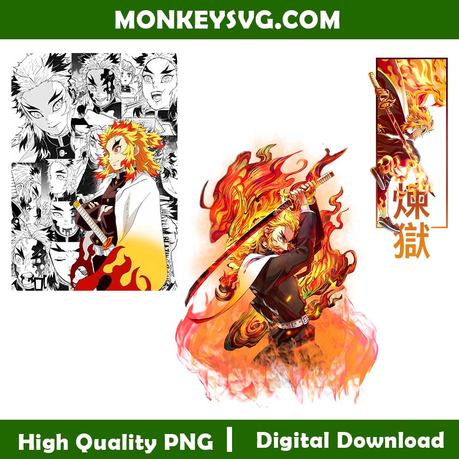 Rengoku Kyojuro Anime Demon Slayer Bundle PNG File, Anime SVF File print, Rengoku Flame Brathing Design PNG, Anime Digital Download