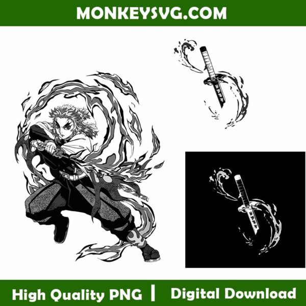 Rengoku two side shirt Design Bundle SVG PNG, Kimetsu No Yaiba Merch Png, Rengoku Flame Hashira Shirt Png, File Digital Download, Tranperant Background
