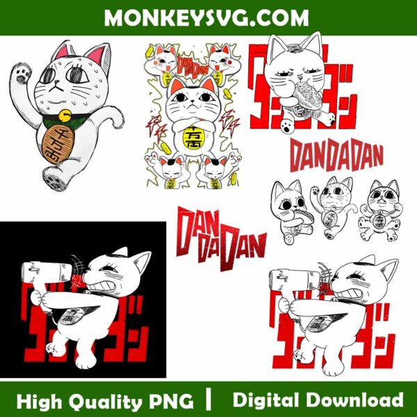 Turbo Granny Dandadan Anime Bundle PNG File, Okarun Momo Seiko Granny Anime SVG File print, Lucky Cat DandaDan Design PNG, Anime Digital Download