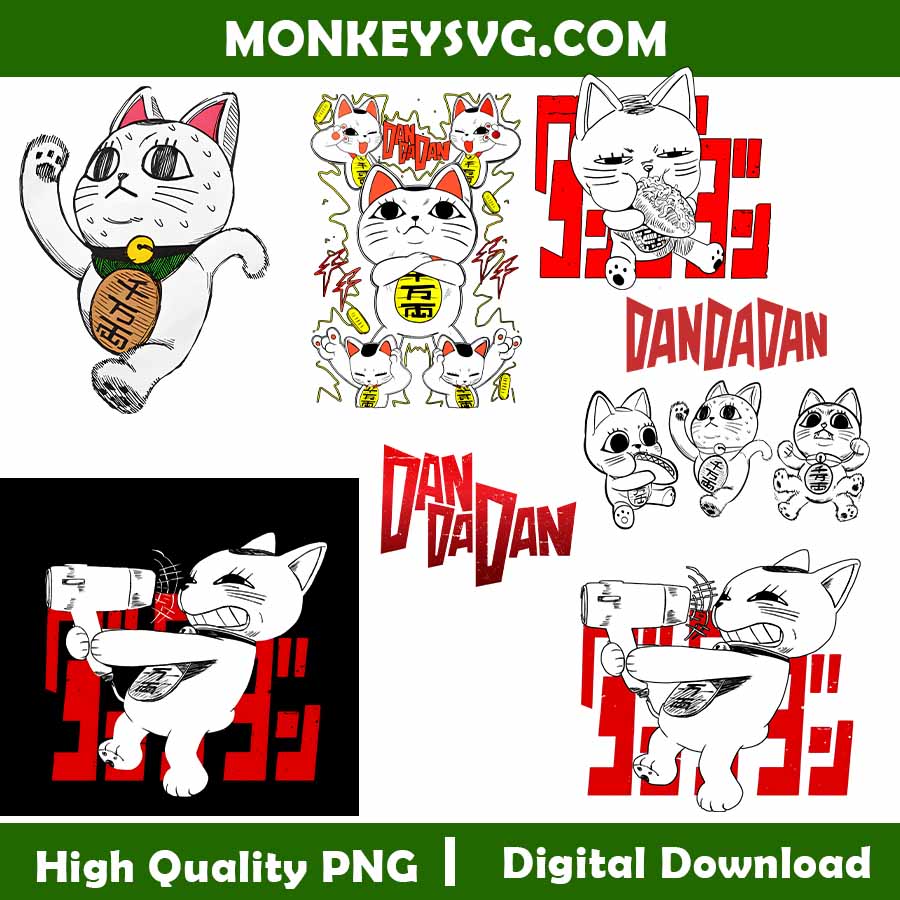 Turbo Granny Dandadan Anime Bundle PNG File, Okarun Momo Seiko Granny Anime SVG File print, Lucky Cat DandaDan Design PNG, Anime Digital Download